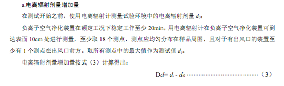 其中尤為突出的是該標準明確提出了對于“臭氧濃度增加量”、“電離輻射計量增加量”和“正離子濃度增加量”的檢測方式,針對負離子空氣凈化設備,以上三個項目必須為檢測項目,有了這樣的檢測標準,就可以讓消費者更加放心的購買。