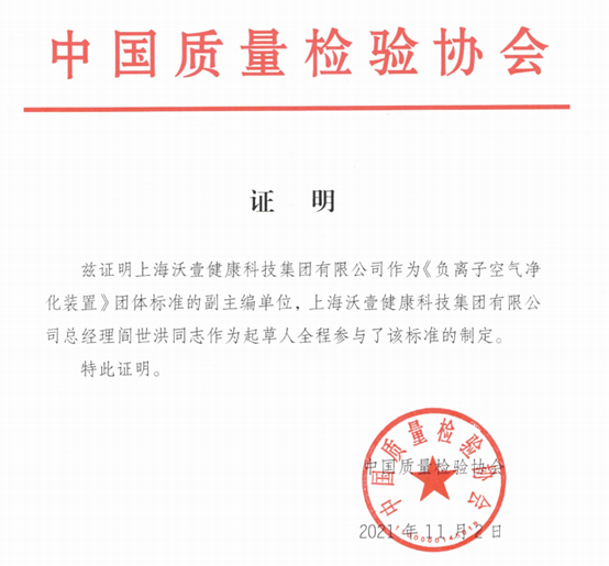 上海沃壹健康作為專注于負離子行業(yè)16年的企業(yè),全程參與了《負離子空氣凈化裝置》標準的起草與制定。希望該標準的出臺能夠對整個負離子行業(yè)起到促進推動、健康發(fā)展的作用。