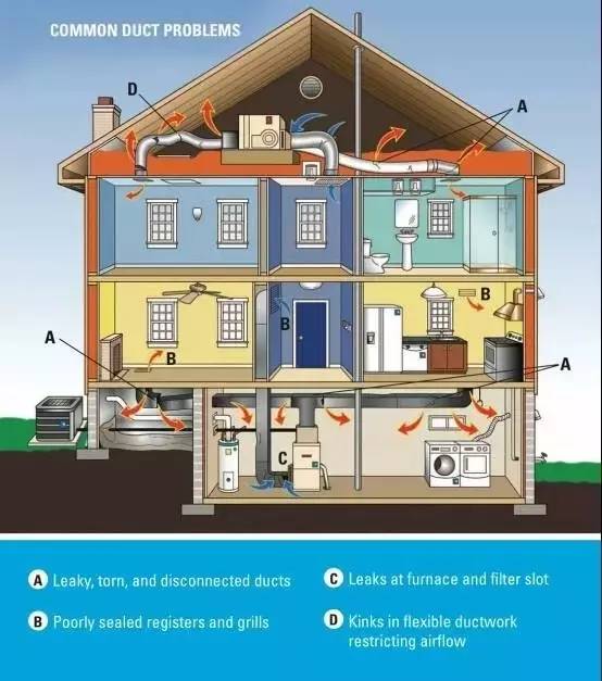 美國獨立住宅,早期的設(shè)計建造中,在地下室設(shè)備間的內(nèi)部,往往會安裝有熱風(fēng)空調(diào)系統(tǒng)的主機,配套部分管道,將已經(jīng)處理過的室內(nèi)空氣輸送到各樓層的各個房間里面,然后再回收已經(jīng)用過的室內(nèi)空氣,再次進(jìn)入主機,進(jìn)行再次加熱,這樣循環(huán)處理。