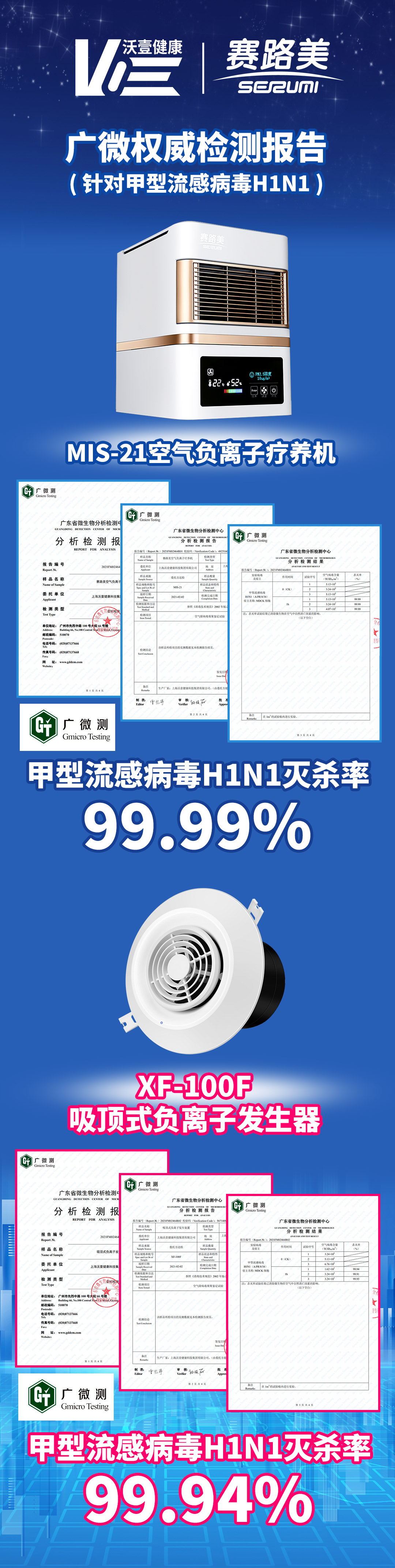 賽路美MIS-21空氣負(fù)離子療養(yǎng)機(jī)與XF-100F吸頂式負(fù)離子發(fā)生器殺滅病毒檢測權(quán)威發(fā)布